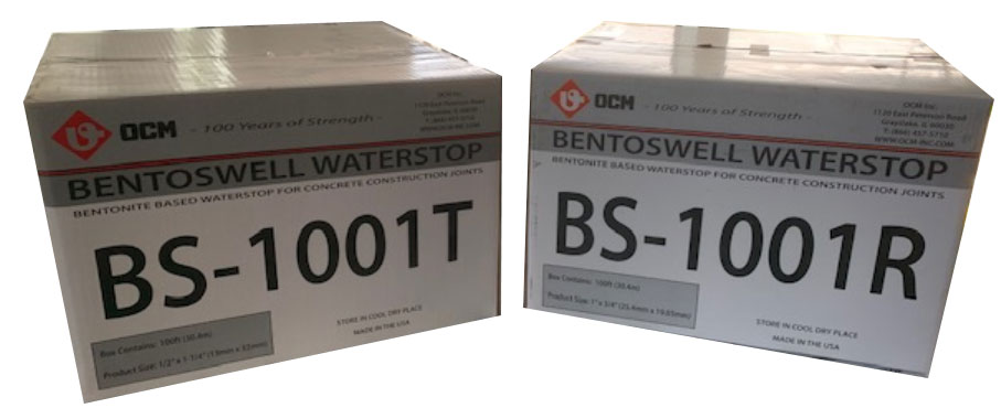 OCM is know for our premier, specified Adeka waterstop product line. But did you know OCM also supplies a high quality, very competitive bentonite strip waterstop, called Bentoswell? Bentoswell comes in both rectangular and trapezoidal shapes and meets all the exact specifications and packaging as the leading brand. Primers too. Bentoswell is an easy counter sale and 60 second email submittal as the “Or Equal” on any job. Make more money for yourselves and save the contractor more money at the same time with OCM’s Bentoswell! We know waterstop, so call today!